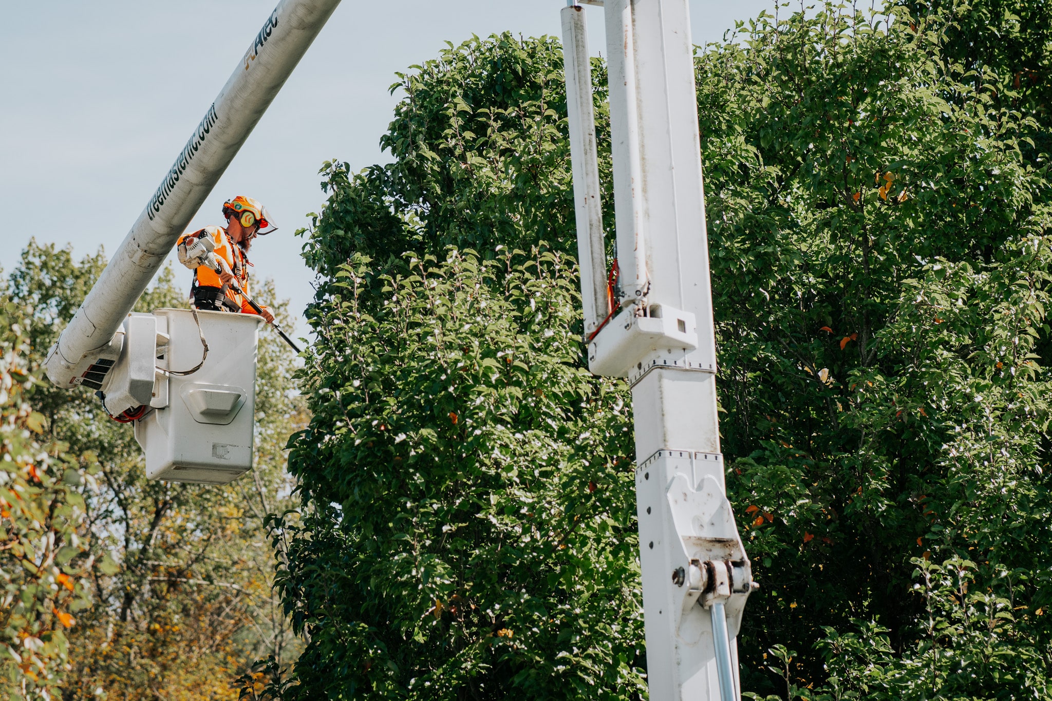 - Pruning from the ground to raise canopies for height clearance.